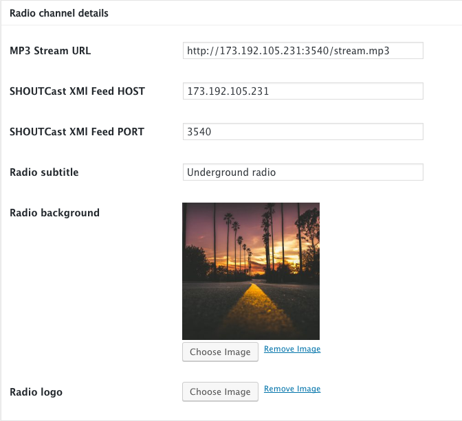 If you have an XML Shoutcast V2 feed with tracklist accessible, this theme can automatically read the track titles and display them in the player. Not every streaming provider has this service, but in case it doesn’t the information will be hidden and no error will bother your visitors.